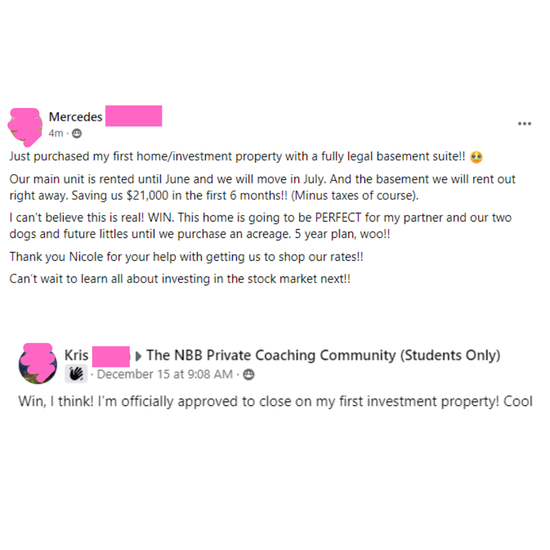 Clients invited to work with Nicole are able to learn the foundations to start saving and investing tens to hundreds of thousands of dollars.